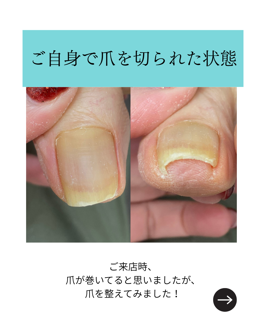 巻き爪ケア#池田市ネイルサロン#フットケア#足の爪