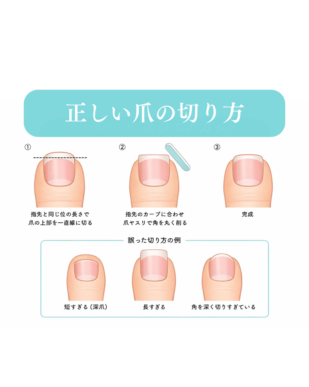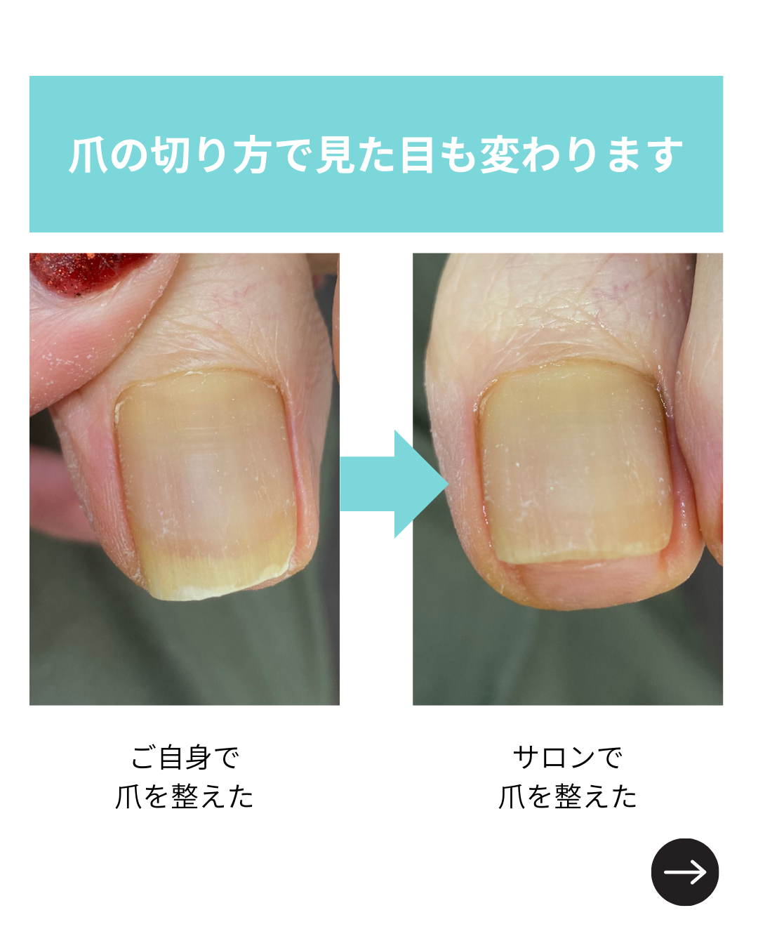 足の爪の切り方だけで、見た目も変わりますし、